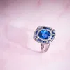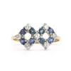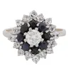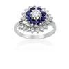 white gold sapphire and diamond double cluster ring