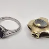 18ct gold five stone diamond and sapphire carved head style ring