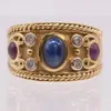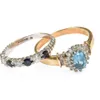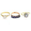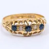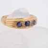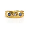15ct gold sapphire and diamonds three stone gypsy set dress ring