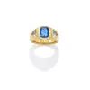 Certificated natural corundum No Indications of heating Celyon Sapphire the early 20th Century sapphire and diamond yellow gold cluster ring