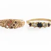 Three 9ct sapphire dress rings, to include a sapphire and diamond half eternity ring, finger sizes between L – N, all hallmarked, total gross weight 8.1 grams approx. Further details: all rings would …