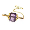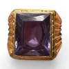 An Art Deco amethyst set gold ring, claw set with a rectangular cut amethyst, measuring approx 9x8mm, platinum engraved shoulders to yellow gold shank, size L, total gross weight approx 2.9gms in a ve…