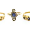 gold sapphire and diamond three stone ring, c.1900