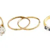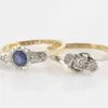 Two gold dress rings, one early 20th century sapphire dress ring stamped 18ct and platinum size O total gross weight 1.9 grams approx., one diamond trilogy ring total diamond weight under 0.1ct, finge…