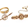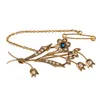 gold sapphire and cultured pearl spray ribbon brooch