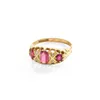 An Early 20th century 5 stone ring, to include multi coloured sapphires, finger size Q, unmarked assessed as 14ct gold, Total gross weight 3 grams approx Further details: abrasion and chips to stones,…
