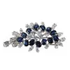 A sapphire and diamond flower form dress ring, in white precious metal. Stamped "18ct" to the shank and surface testing accordingly. Size M1/2. Gross weight approximately: 8.10 grams.