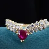 gold ruby and diamond spray cluster ring