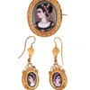 A 19TH CENTURY SWISS ENAMELLED SUITE OF BROOCH AND EARRINGS