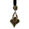 A vintage Christian Lacroix abstract heart shaped pendent in a textured gold tone metal. The heart is filled with stencilled cow skin and the hinged drop set with cut crystals. The pendent hangs from