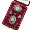 antique silver gilt gemstone set miniature demi-parure
