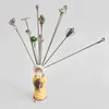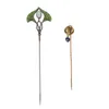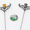 A collection of hatpins to include a sterling silver Charles Horner silver topped thistle pin, a secessionist style silver topped pin and two pins with yellow metal and enamel flower heads