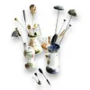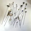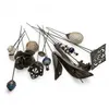 A collection of hat pins. To include a Charles Horner silver thistle pin, another similar silver pin, a sterling silver drive golf club pin, a selection of early plastic pins including a lucite feathe…