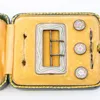 silver gilt guilloché enamel buckle and buttons set, by John Aitken & Son