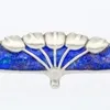 Charles Horner- a silver and enamel brooch, comprising an oval bar, central silver tulip motif, overlaid to blue guilloche enamel, length approx 55mm, C clasp, later metal pin, hallmarked Chester 1911…
