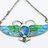 Charles Horner- a silver and enamel Egyptian revival pendant, featuring a winged scarab, with blue, turquoise and green guilloche enamel, suspended from fine cain to a later bale and silver chain, pen…