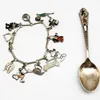 A novelty George V silver teaspoon with enamelled comical animals and "Gugnuncs" lettering, hallmarked by TH, Birmingham, 1926, along with a white metal small charm bracelet with mixed novelty charms