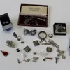 A Charles Horner faux turquoise set heart pendant along with a collection of sterling silver and white metal jewellery comprising brooches, pendants, rings, earrings and a bracelet. To include a Victo…