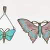 A Charles Horner silver and turquoise enamel butterfly drop pendant, length approx 40mm, together with a silver and enamel butterfly brooch with mauve and turquoise decoration, length approx 50mm, a/f…