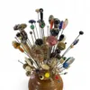 A collection of hat pins to include a Whitby jet example, two satsuma porcelain pins, a Victorian Pinchbeck piece and others, together with four hat pin holders including a Limoges example.