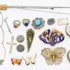 A collection of early 20th century silver and enamel brooches to include a bluebird, size approx 50mm, later base pin, together with a pheasant and butterfly both with enamel loss, together with a pen…