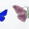Two silver and guilloche enamel butterfly brooches, comprising a larger mauve and pale green enamel brooch, size approx 35mm, along with a small dark blue and green brooch, size approx 25mm, both mark…