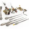 Collection of hatpins to include Charles Horner, Silver Scottish themed pins with 3 pin cushions 2 in the shape of ladies shoes with laces and cream cushion, the other in the form of a hat pin stand w…