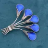 A David Anderson sterling silver and blue guilloche enamel leaf brooch, impressed makers mark and "Norway Sterling", length 7cm.