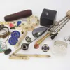 A collection of mid to late 20th century compacts, mostly by stratton including a boxed set with lipstick holder plus a King Edward cigar box holding a number of hat pins including Charles Horner exam…