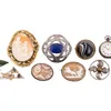 - A GROUP OF NINE BROOCHES AND A LADY'S SILVER FOB WATCH
