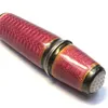 A Continental 900 silver-gilt and enamel needle case, with pink guilloche enamel decoration and an opalescent glass top, screw top lifts off to reveal space with gilt interior, marked 900 to bottom en…