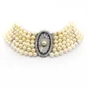 Art Deco diamond and sapphire five row pearl choker