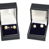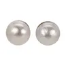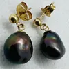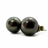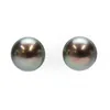 A pair of off round black cultured pearl ear studs. Approximate diameter 9.5mm. with precious metal studs and backs stamped 375 and assessed as 9ct gold.