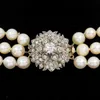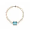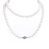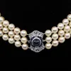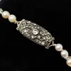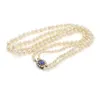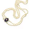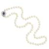 single row pearl necklace with a sapphire and diamond set clasp