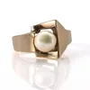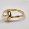 gold single stone cultured pearl dress ring