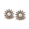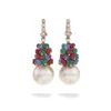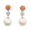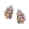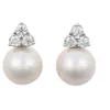 A pair of cultured pearl and diamond cluster earrings