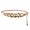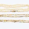 An 18ct. yellow gold and natural freshwater pearl double chain bracelet, adjustable to two lengths, each chain with cable link joining pierced natural freshwater pearls of differing shape, colour and …