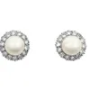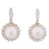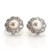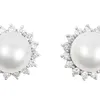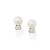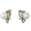 A pair of pearl and diamond set earrings