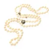 opera length cultured pearl necklace with a diamond set plaque
