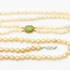 An opera length strand of cultured pearls with a diamond set precious yellow metal faux clasp, together with a freshwater cultured pearl necklace with a 14k stamped clasp. The opera strand features 6m…