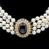 four row cultured freshwater pearl and diamond necklace/choker