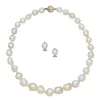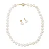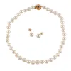 A LOTUS CULTURERED PEARL NECKLACE AND EARRINGS SET WITH 18 CARAT GOLD CLASP the necklace with 18 carat gold clap and the pair of earrings with 18 carat ends, both stamped '750', boxed.