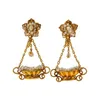 A pair of chalcedony and pearl earrings