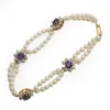 An amethyst, pearl and diamond necklace