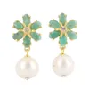 Pair of Cultured Pearl and Green Hardstone...