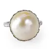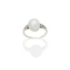large natural saltwater pearl ring with diamond set shoulders