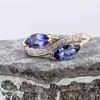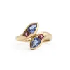 9ct gold tanzanite and garnet twin snake ring