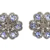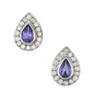 A pair of tanzanites and diamonds silver set cluster earrings, comprising pear cut tanzanites, total weight approx 1.70 carats, within round brilliant cut diamond set borders, total diamond weight app…
