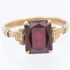 A synthetic ruby set 9ct gold single stone ring, set with a rectangular cut stone, size Q, total gross weight approx 3gms Further details: stones present and intact, wear and tear commensurate with ag…