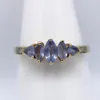 three stone platinum tanzanite and diamond dress ring